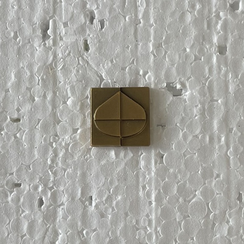 Avers: Quadratischer Grund, auf dessen sich eine tropfenförmige Figur erhebt und mittels Kreuz viergeteilt wird.