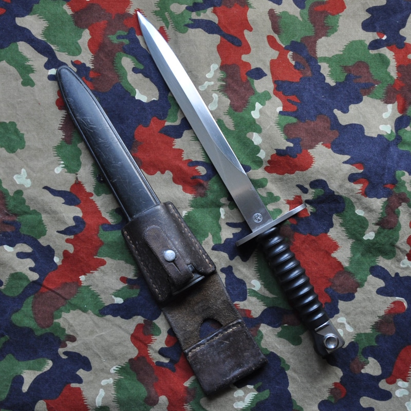 Zustand: Gut, altersbedingte Gebrauchsspuren vorhanden, Leder sowie Klinge wurden grobgereinigt.
