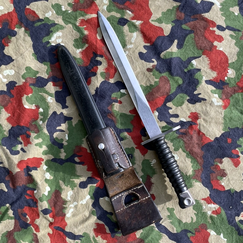 Zustand: Gut, altersbedingte Gebrauchsspuren vorhanden, Leder sowie Klinge wurden grobgereinigt.