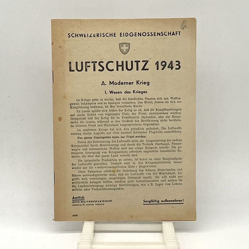 Broschur der Schweizerischen Eidgenossenschaft über den Luftschutz 1943 während des Zweiten Weltkriegs. Abgegeben an alle Haushalte.